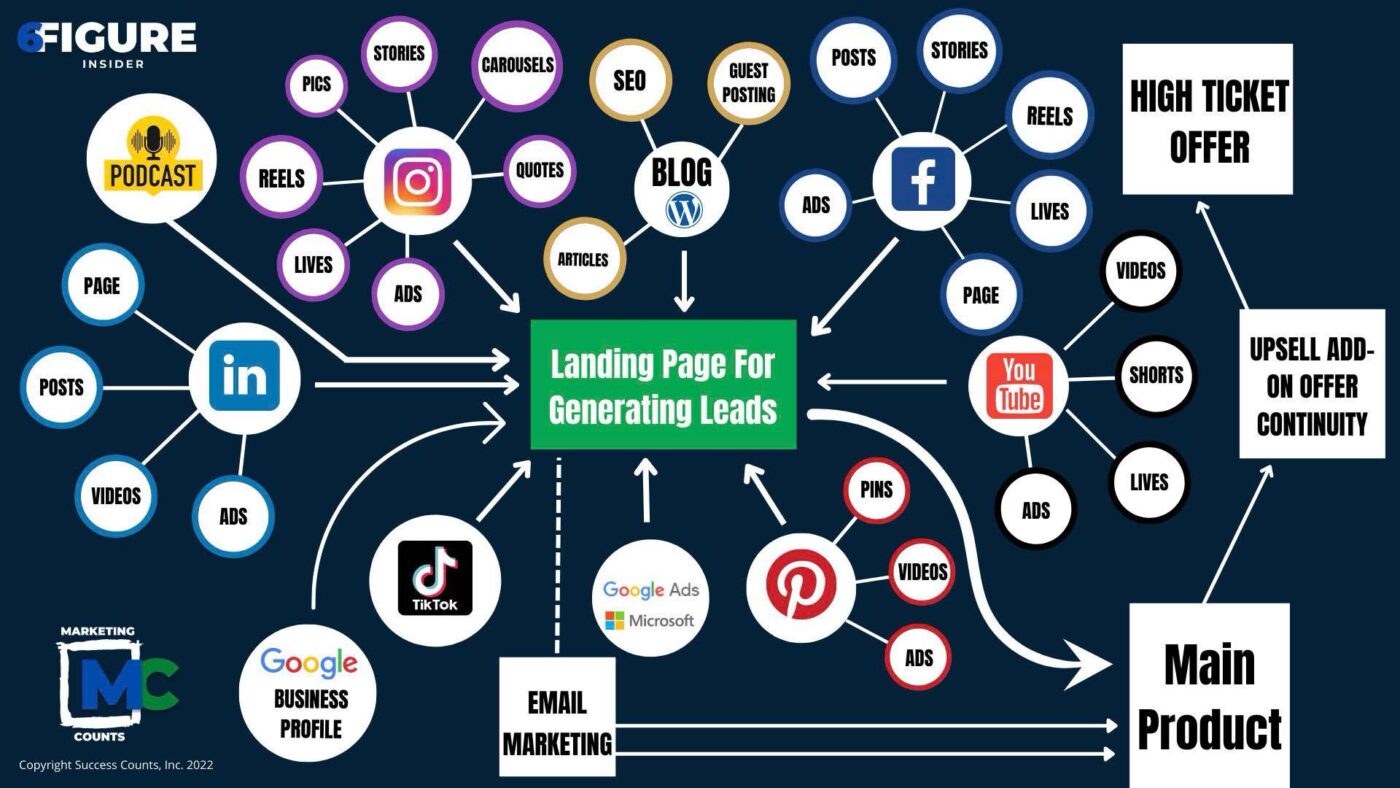 Mỗi nền tảng đóng vai trò như một “điểm chạm” trong hành trình khách hàng. Khách hàng có thể bắt gặp doanh nghiệp ở bất kỳ đâu, nhưng tất cả đều có chung một mục tiêu là dẫn về Landing Page.